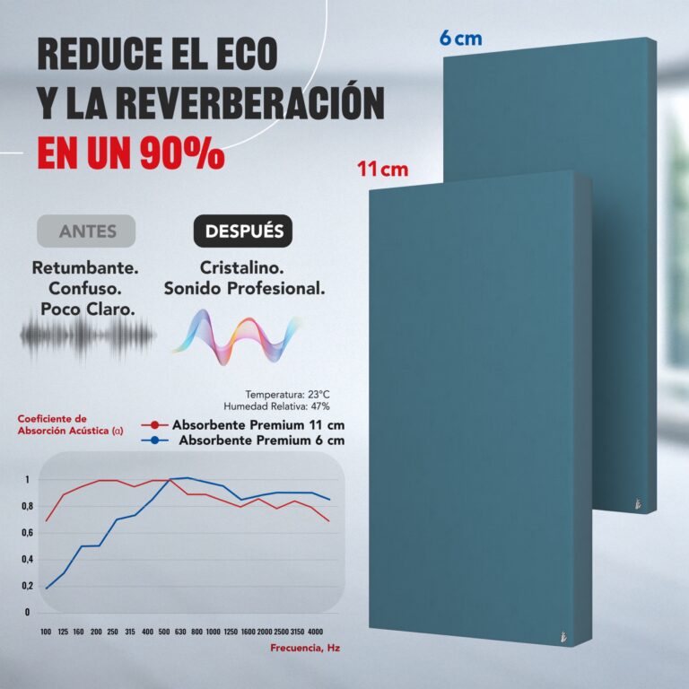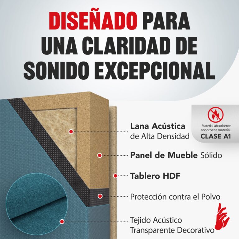 Elimina eficazmente la reverberación, las ondas estacionarias y el eco, garantizando un sonido claro y limpio en cualquier estancia.