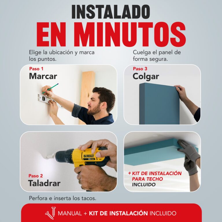 Recibirás un kit de montaje completo para instalar el panel donde quieras: en la pared o en el techo (elige la opción al realizar el pedido).